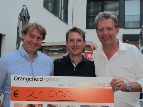 Tijdens de veiling gingen unieke items onder de hamer, zoals de Yellow Jersey van Andy Schleck en twee mooie kuntswerken van Gam klutier. Totaal is er het geweldige bedrag van 21.000,- euro opgehaald voor Orange Babies. Het was een topdag! Wij bedanken iedereen die aan dit mooie event heeft meegewerkt.